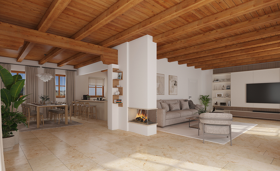 Das Dachgeschoss ist derzeit als großzügige, offene Fläche dargestellt und bietet damit die Grundlage für mögliche Ausbauvarianten (z. B. weitere Zimmer, Studio, Homeoffice, Gäste-/Kinderbereich). Die wohnliche Nutzung ist genehmigungspflichtig und vom Erwerber zu prüfen.