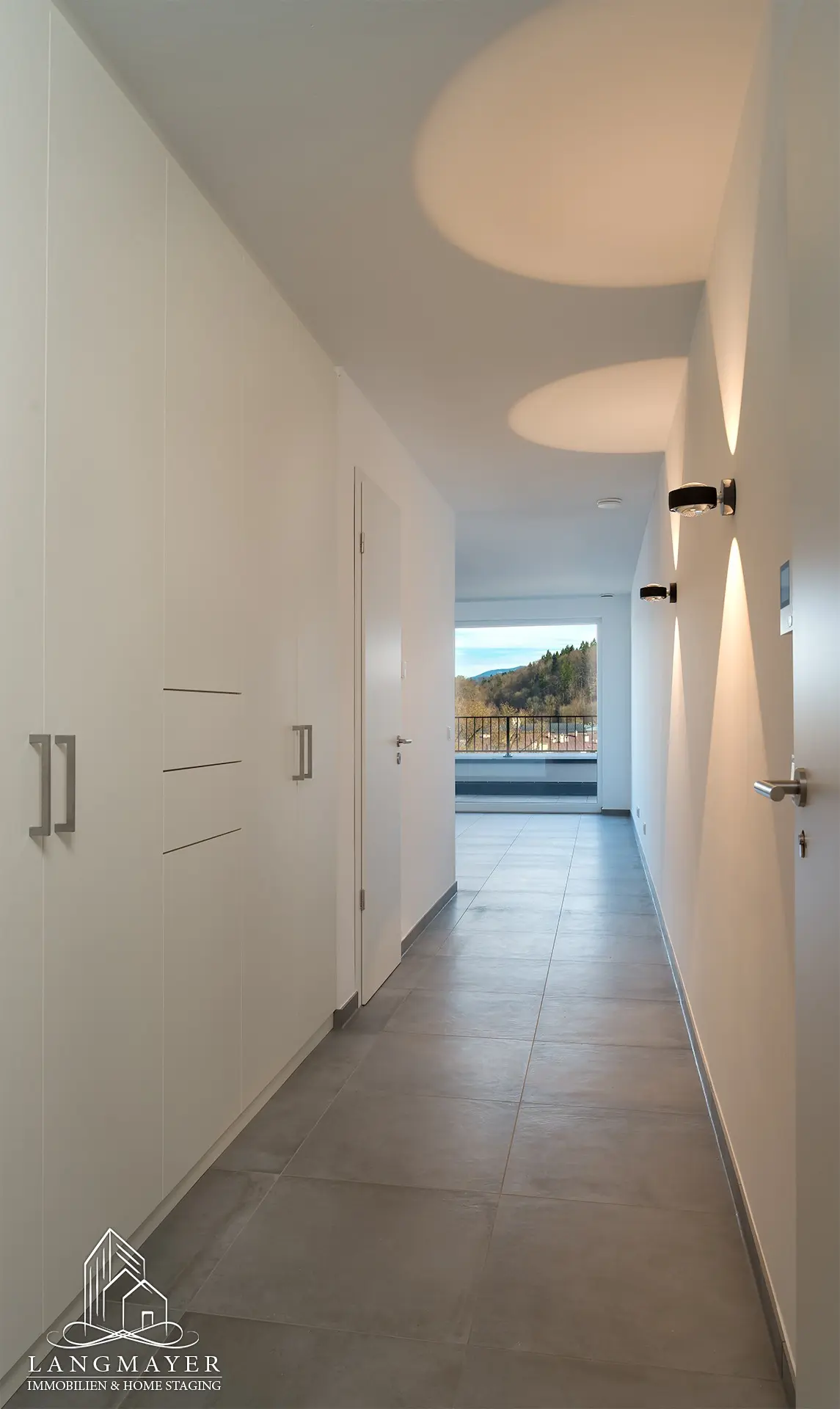 Der Balkon mit seinen großzügigen Fensterfronten erweitert gefühlt den Wohnraum und bietet einen atemberaubenden Blick bis hin zu den Alpen.